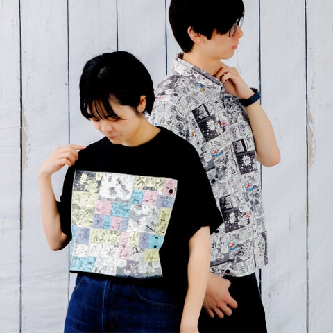 5作品の原作コミックをモチーフにしたTシャツやシャツ、エコバッグ、ポーチなどの限定アイテムが登場しています。
