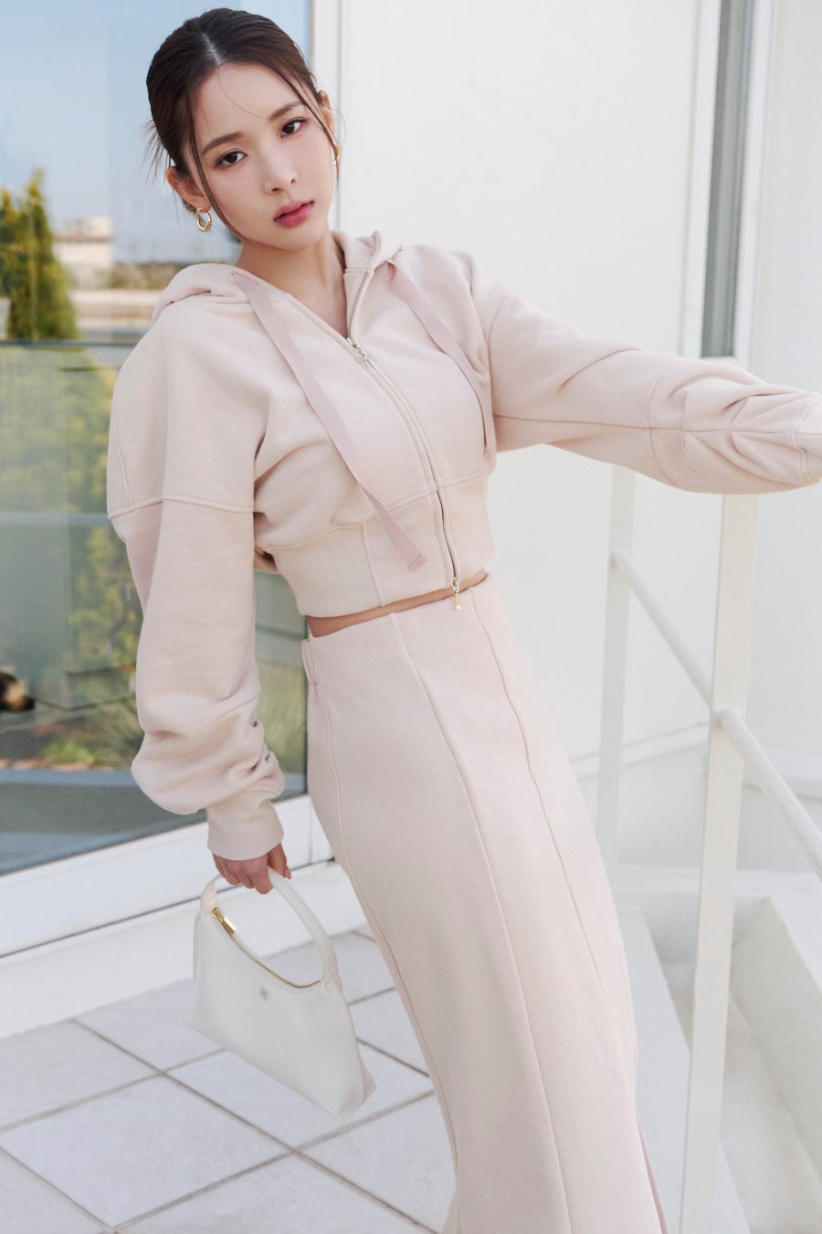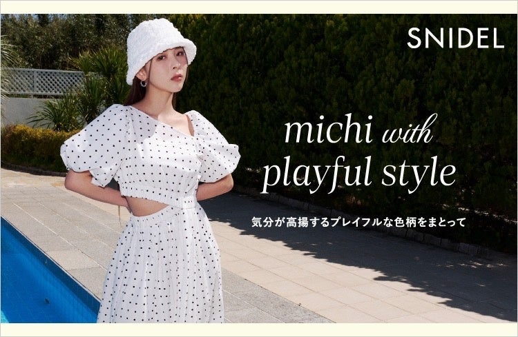 モデルのミチはファッションアイコンとして活躍中で、SNIDELはストリートとエレガンスを融合させたスタイリッシュなブランドです。