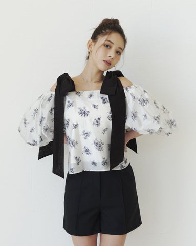 オフショルダーリボンブラウスやリボンシャーリングトップスなど、フェミニンでロマンティックなデザインが特徴です。
