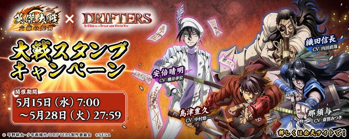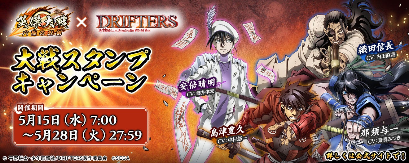 また、TVアニメ『DRIFTERS』とのコラボイベントも開催中で、島津豊久や織田信長などが登場します。