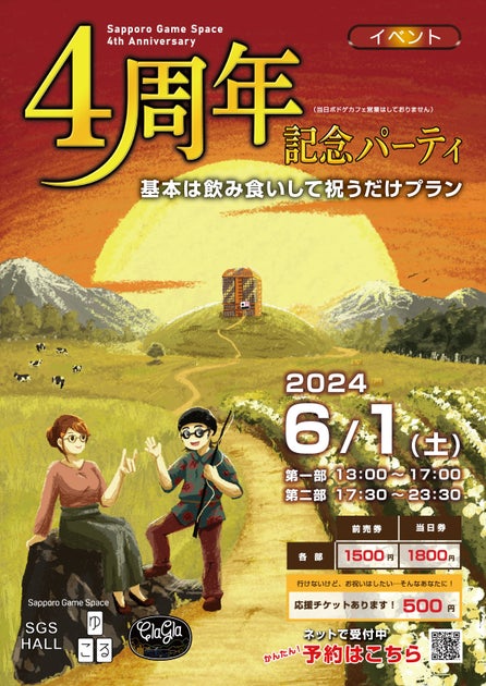 札幌市中央区にあるボードゲームカフェ『かくれがゲームカフェ ゆこる』が2024年6月1日に4周年記念パーティを開催します。