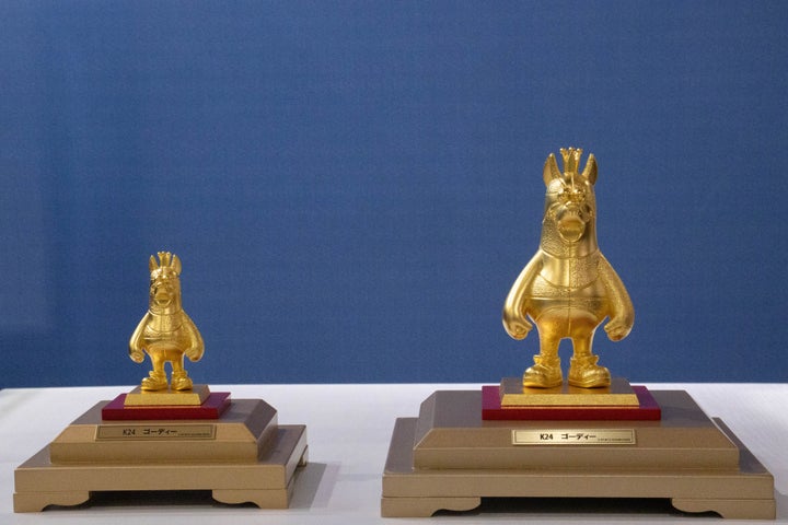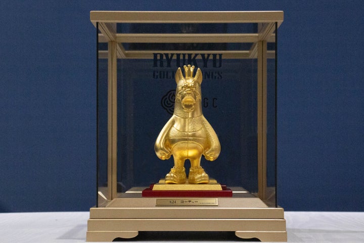 - 沖縄アリーナに展示:金箔像と純金ゴーディー