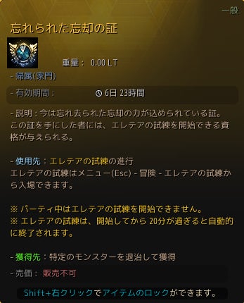 新コンテンツ「エレテアの試練」が追加され、忘却の証を使用して参加可能です。
