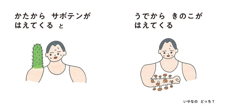 読者は「だんごむしとかたつむり」や「ぼうしとパンツ」など、面白い選択肢に真剣に考えながら楽しめます。