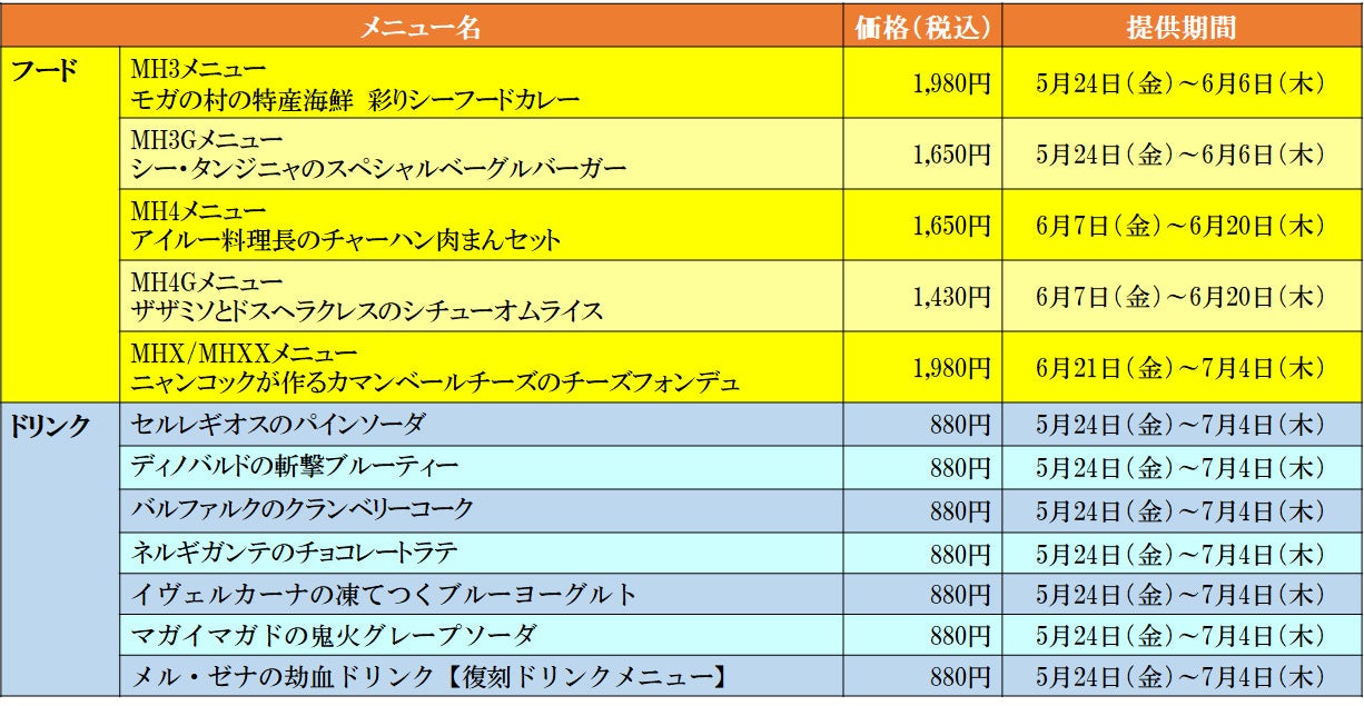 6月7日からはMH4メニューとMH4Gメニューが追加され、さらに6月21日からはMHX/MHXXメニューも楽しめます。
