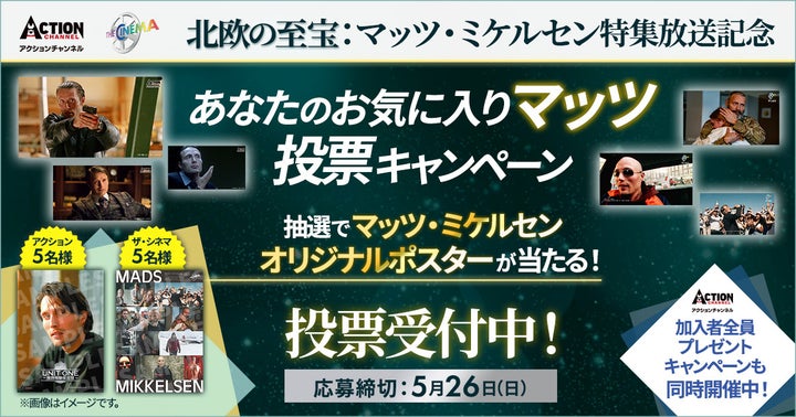 - アクションチャンネルとザシネマが共同企画で「北欧の至宝:マッツミケルセン特集」を6月に放送