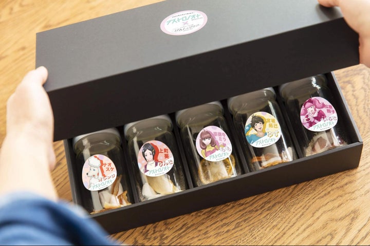 コラボ商品にはキャラクターごとの「ぽんしゅグリア」とギフトボックスがあり、特設ECサイトで販売中です。