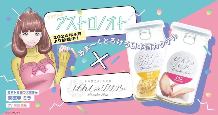 株式会社FARM8がTVアニメ『アストロノオト』と日本酒カクテルの素「ぽんしゅグリア」とのコラボ商品を5月17日より販売開始しました。