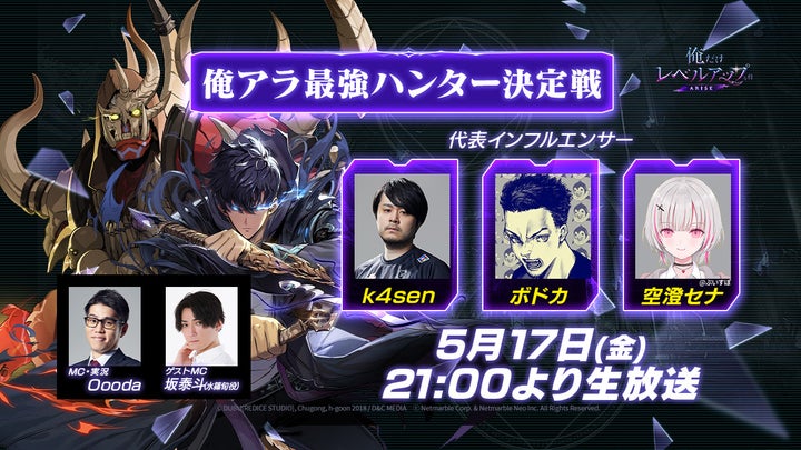 - 5月17日(金)21:00より生放送「俺アラ最強ハンター決定戦」