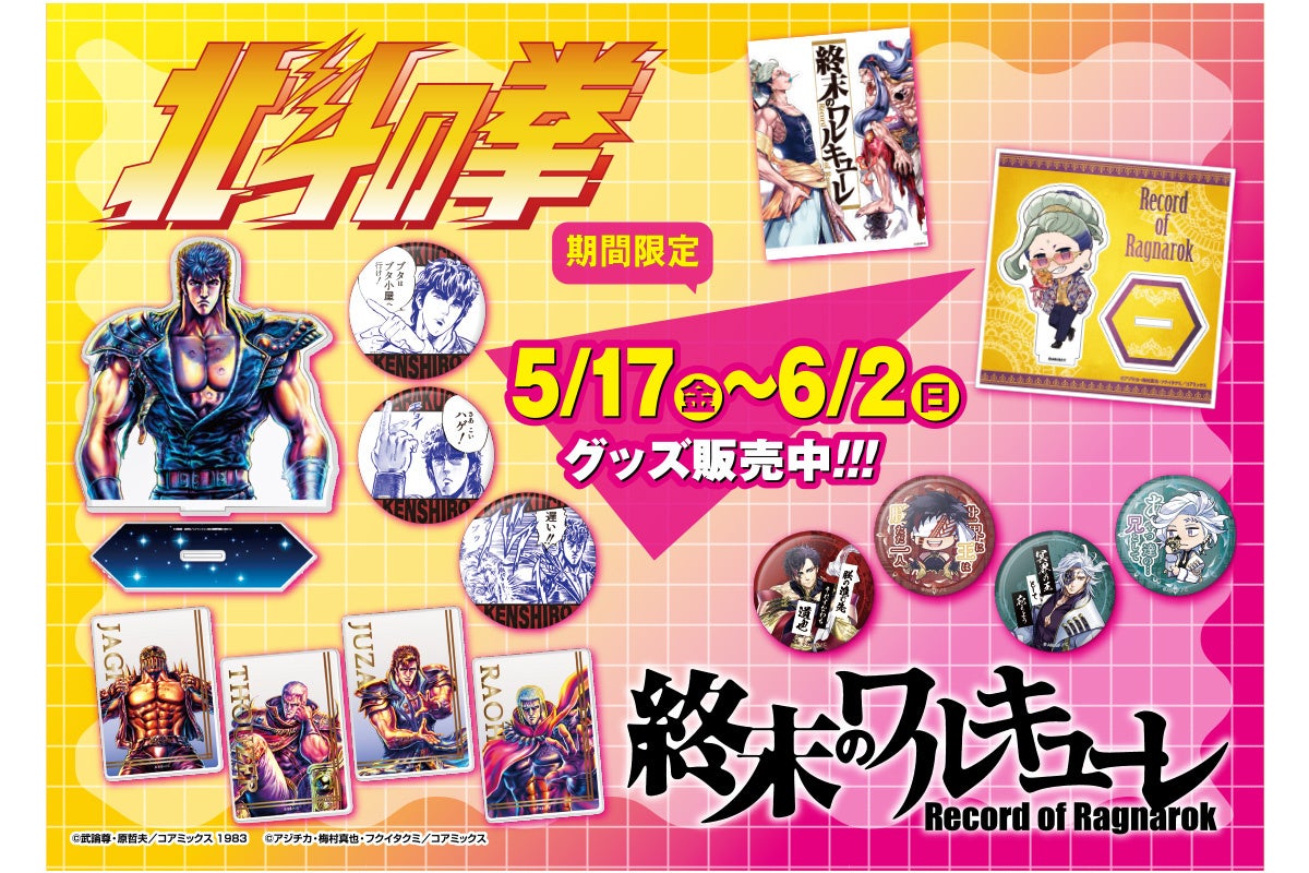 『終末のワルキューレ』や『北斗の拳』の人気グッズが販売されます。