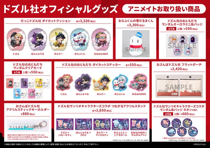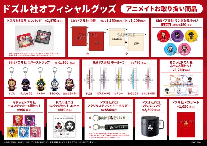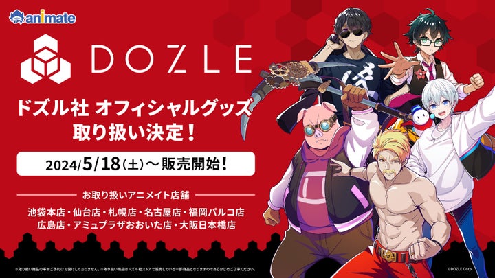 株式会社ドズルは、2024年5月18日からアニメイト8店舗でオフィシャルグッズの販売を開始します。