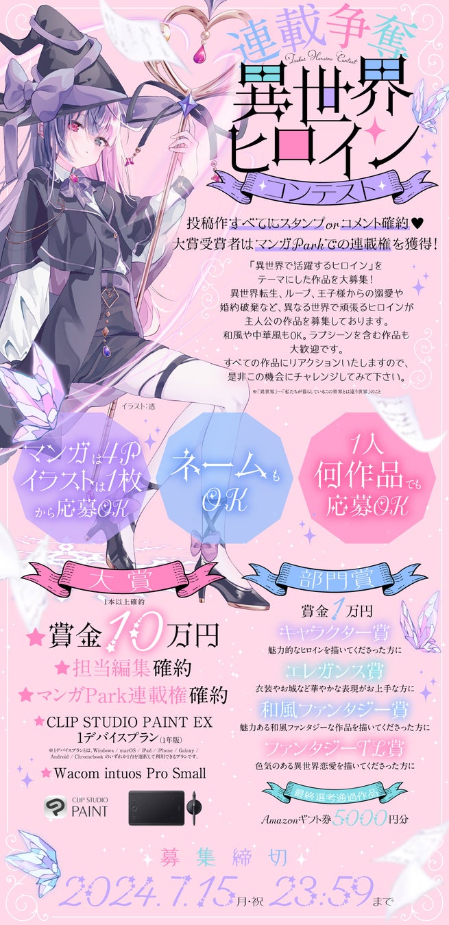 2024年5月17日から、株式会社白泉社が主催する「マンガラボ!」にて「異世界ヒロインコンテスト」が開催されます。