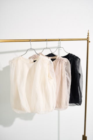 オーガンジープルオーバーやタフタニットワンピースなどがラインナップされ、カラーバリエーションも豊富。