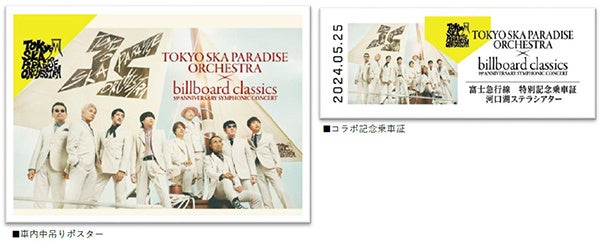 車内ではオリジナルポスターが展示され、河口湖駅ではスカパラのメンバーによる到着アナウンスが放送されます。
