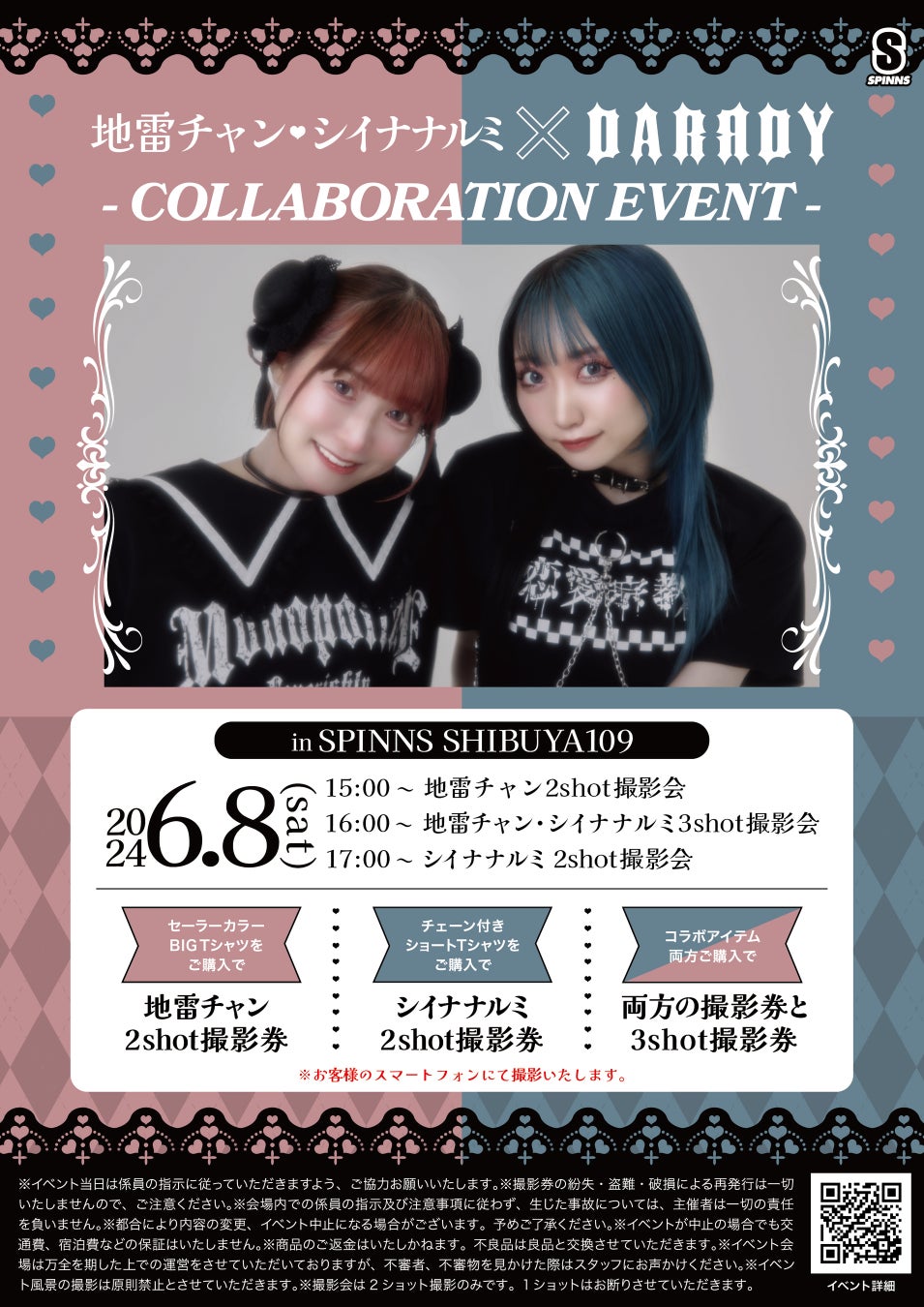 株式会社ヒューマンフォーラムが展開するアパレルブランド「SPINNS」のインブランド『DARRDY』が、『地雷チャン』と『シイナナルミ』とのコラボを発表しました。