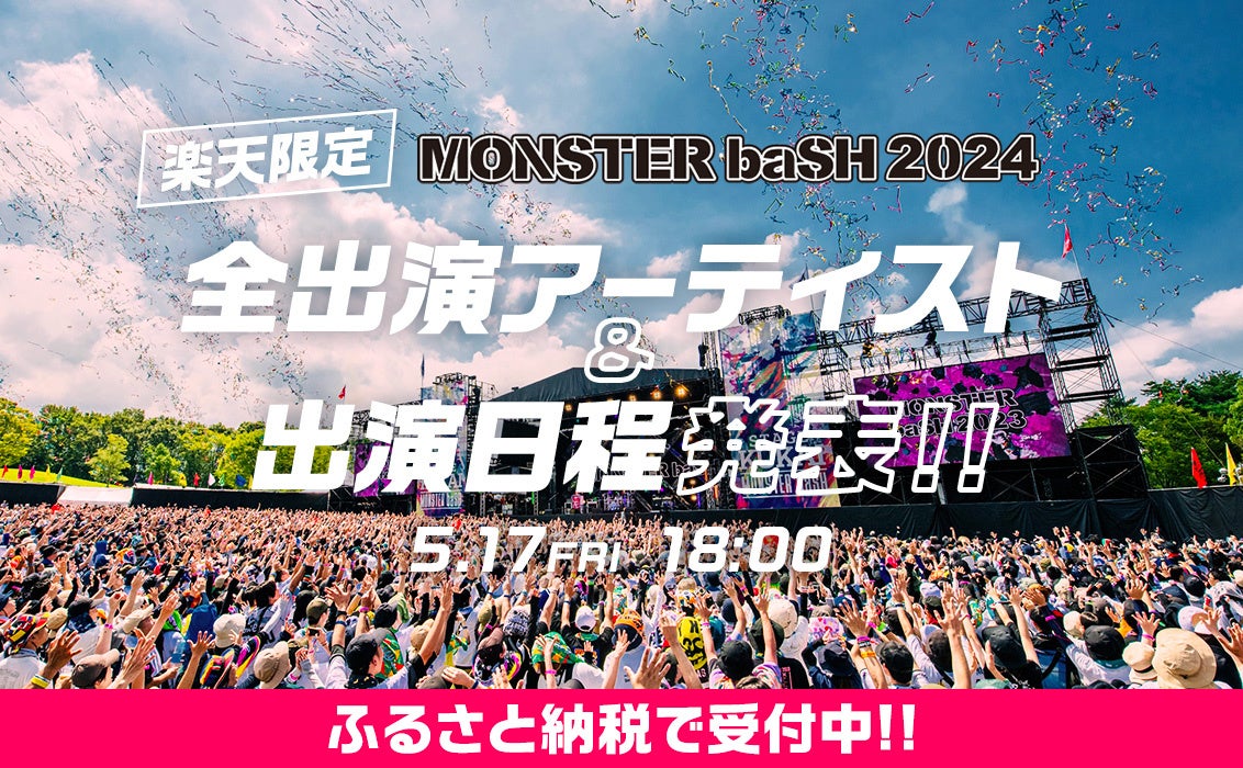 香川県まんのう町のふるさと納税支援を行うLRとデュークが連携し、中四国最大級の音楽フェス「MONSTER baSH」の全出演アーティストと出演日程が発表されました。