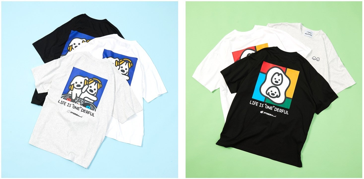 - 愛犬との日常をテーマにしたTシャツやバックプリントTシャツ、キャップなどが登場