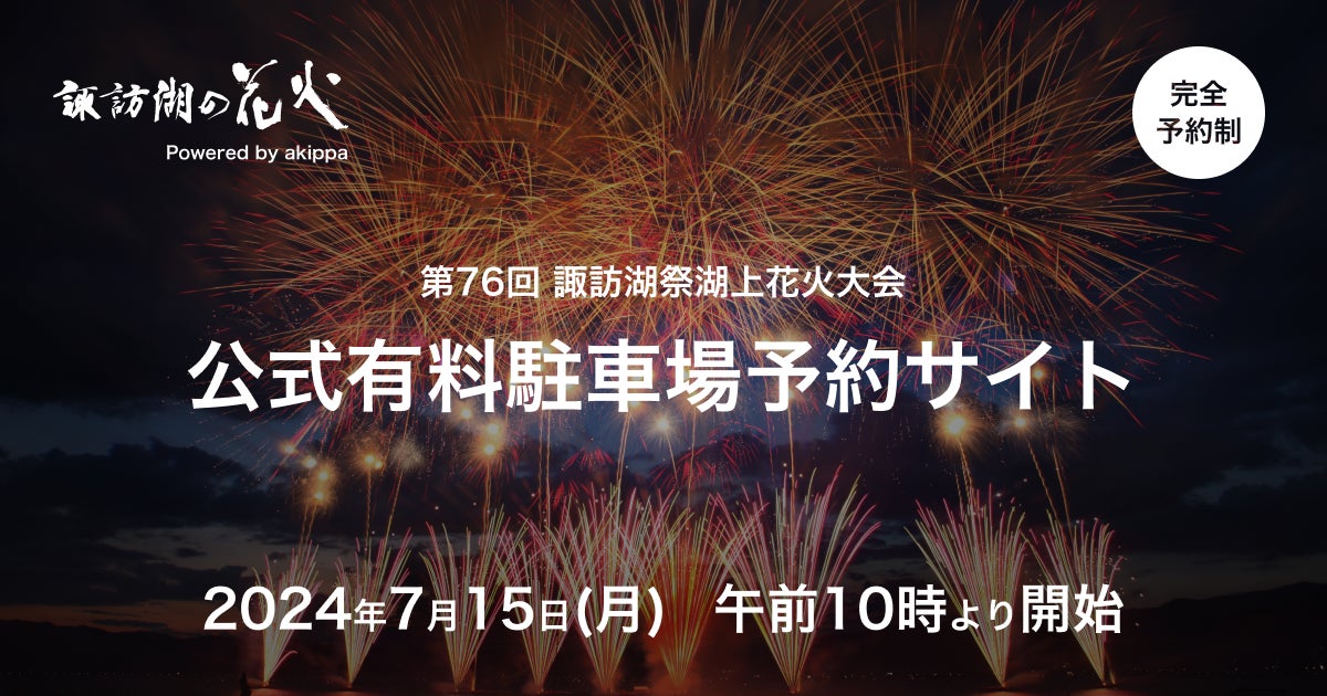第76回諏訪湖祭湖上花火大会の公式有料駐車場の予約は、7月15日からアキッパにて開始されます。