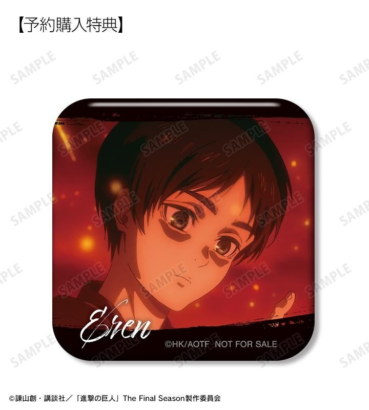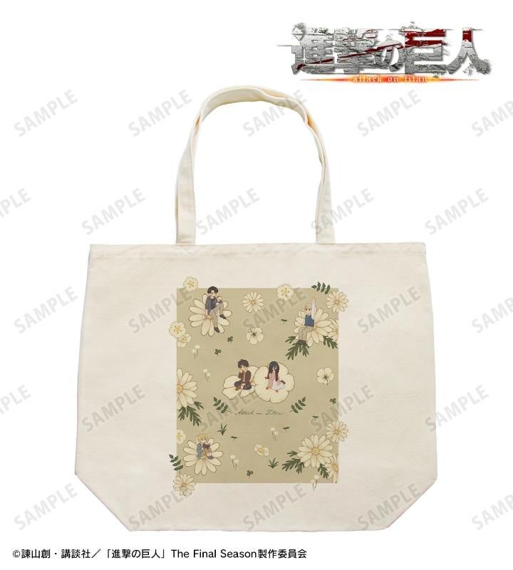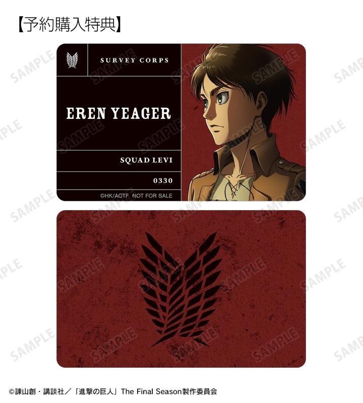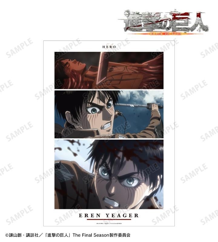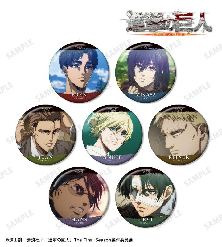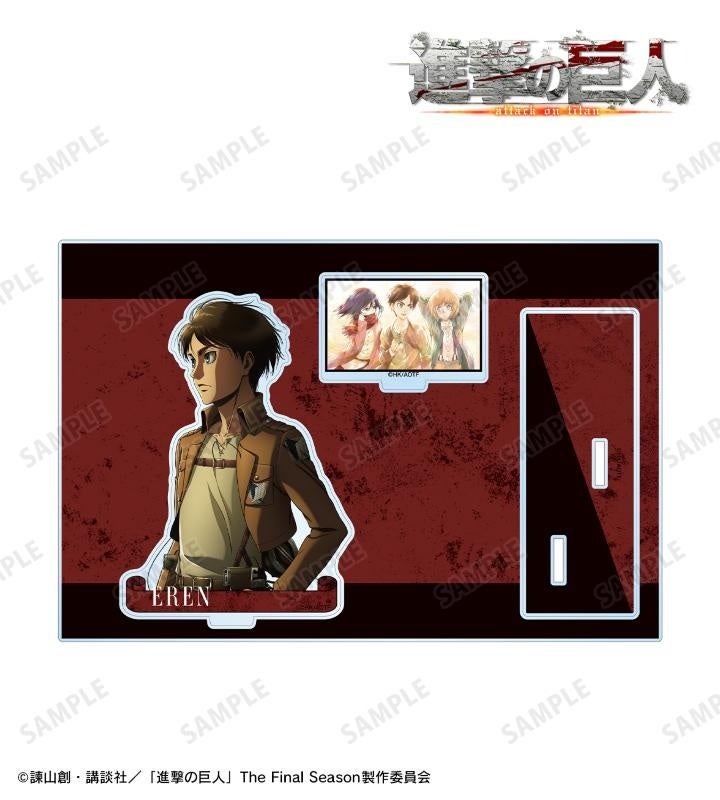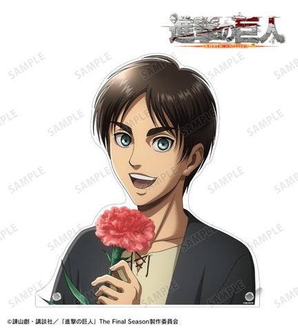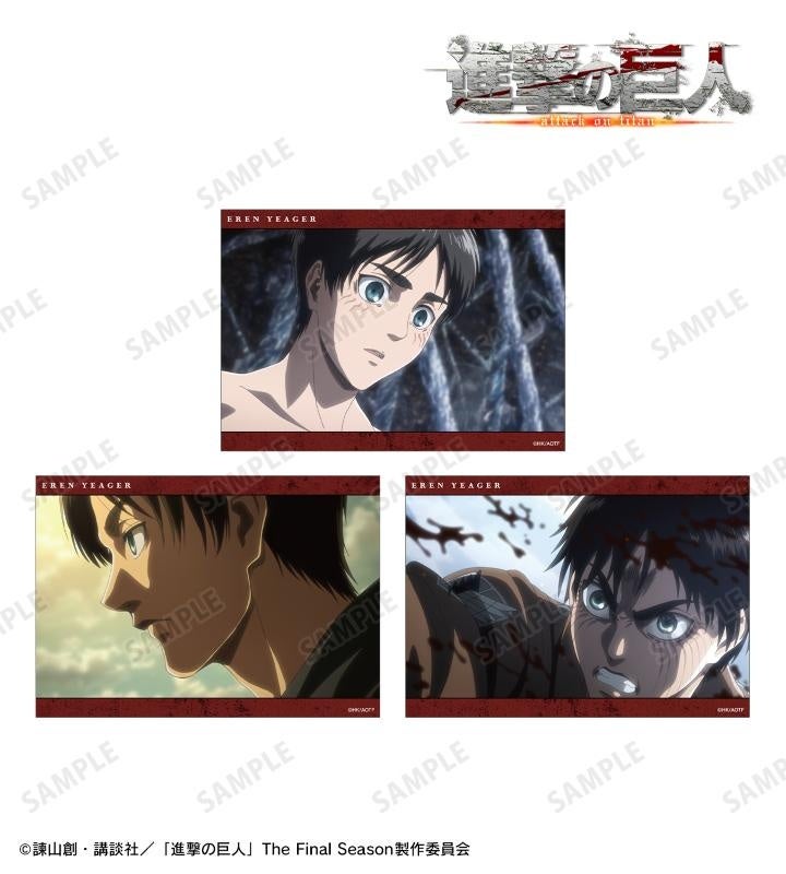 - TVアニメ『進撃の巨人』、特大ダイカットアクリルパネル、Botania第2弾トートバッグ、トレーディングプロフィールカード、缶バッジ、BIGアクリルスタンド、A3マット加工ポスター、ブロマイド3枚セット