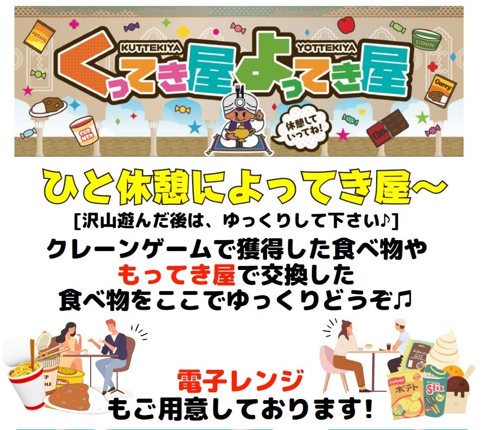 ・【ゆったり休憩出来る 食ってき屋よってき屋スペース】