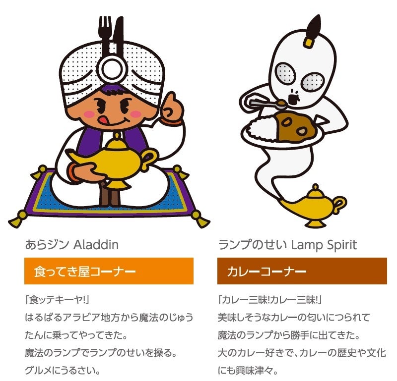 また、各コーナーには童話のキャラクターが割り振られており、公式ホームページで紹介されている。