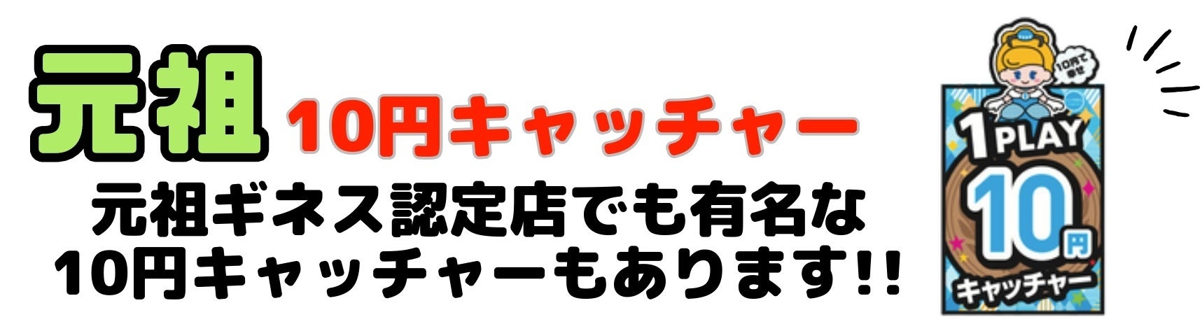 今や、多くのアミューズメント施設で真似をされ、全国的に見かける様になった10円キャッチャーもあります!