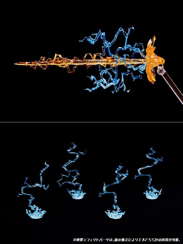 カラフルなキャラクターが完成し、可動機構で特徴的なポーズや電撃エフェクトを再現可能。