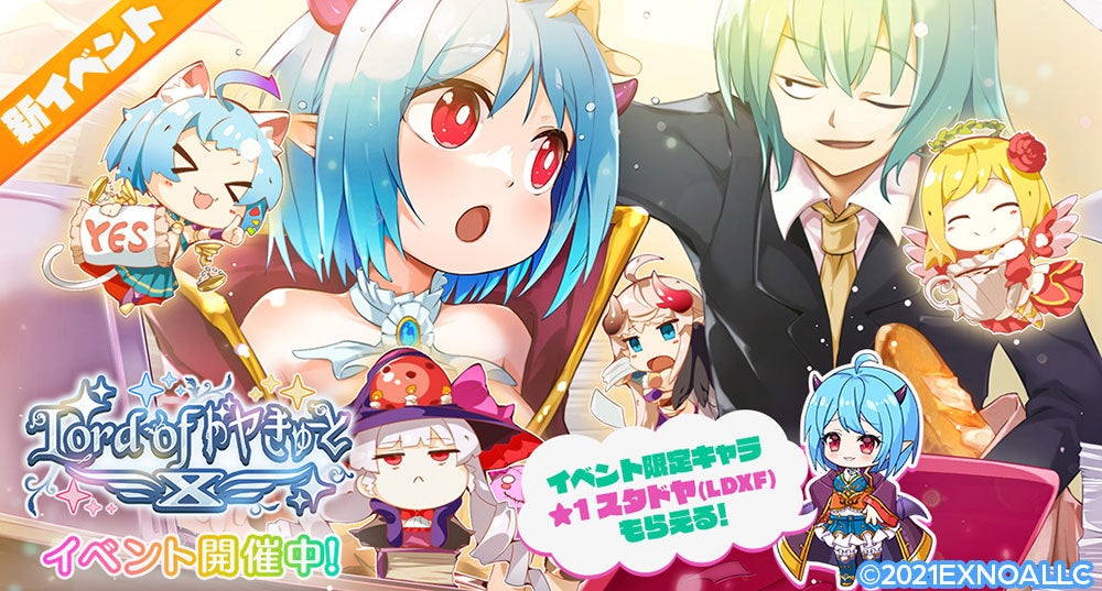 「Lord ofドヤきゅーとX」コラボイベント開催中!限定キャラ「★1 スタドヤ(LDXF)」や「★3 セフィラ(LDXF)」が登場。