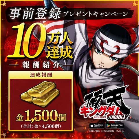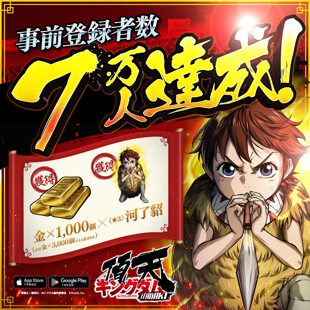 アニメ『キングダム』を題材としたスマホゲーム『キングダム 頂天』が事前登録者数7万人を突破しました。