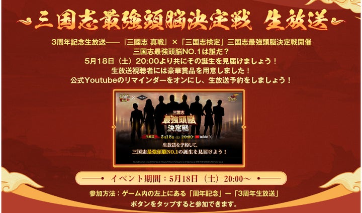 - 『三國志13』IPを使用した『三國志 真戦』が3周年