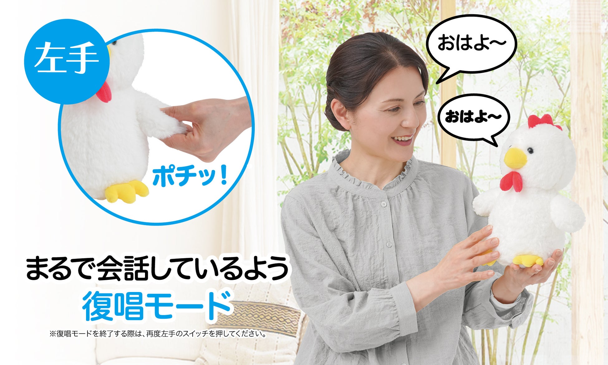 音量はしっぽのボタンで調節可能で、お父様やお母様へのプレゼントや、お孫さんとのコミュニケーションに最適です。