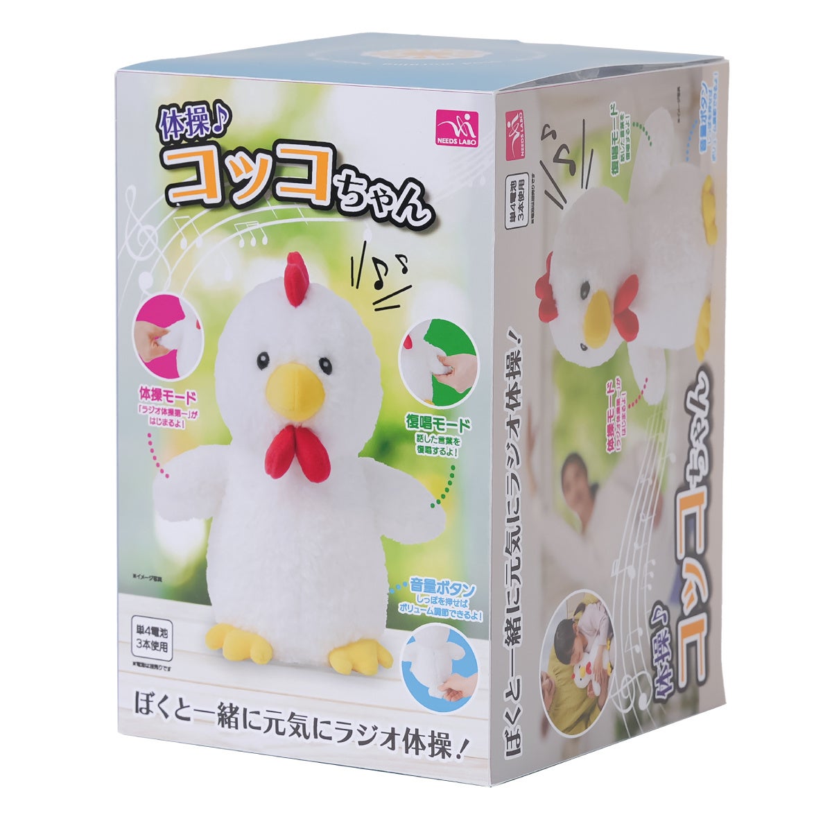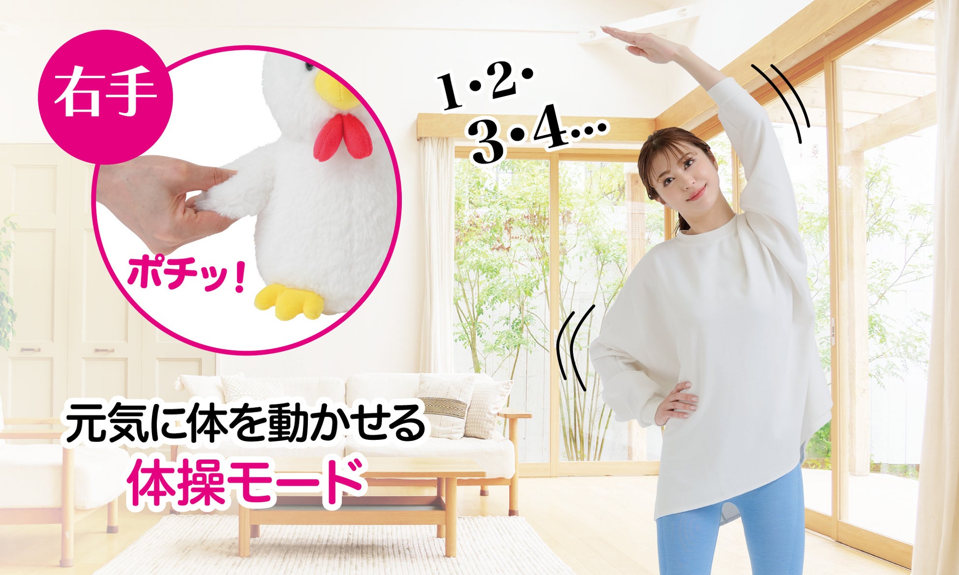 手軽に楽しめる「体操コッコちゃん」は、右手を押すとラジオ体操第一が流れ、健康習慣をサポートします。