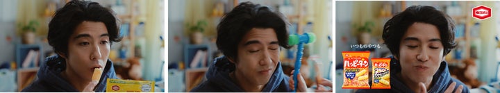 賀来さん自身も『ハッピーターン』のファンであり、『ハッピーターン スパイス』の味を楽しんでいます。