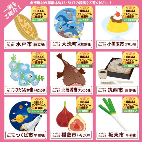 茨城県の魅力を全国に発信するため、トモヱ乳業が44市町村の特産品をイメージしたアイスクリームを開発中です。