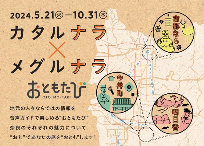 関西イノベーションセンターと株式会社Otonoが奈良県3エリアで開催する周遊イベント「カタルナラ×メグルナラ」が5月21日から始まります。