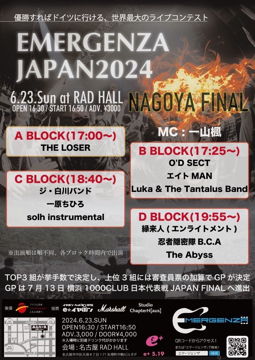エマージェンザ・ジャパン事務局は、2024年6月23日に名古屋の大須RAD HALLで開催される名古屋FINALを主催します。