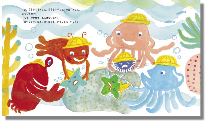 音楽ユニットケロポンズによる絵本『うみのワクワクえん』は、エビとカニが主役の楽しいストーリーです。