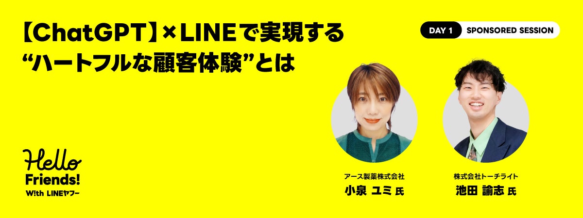 アース製薬の小泉氏も登壇し、LINE公式アカウントとChatGPT搭載AIチャットボットを活用した顧客体験について話します。