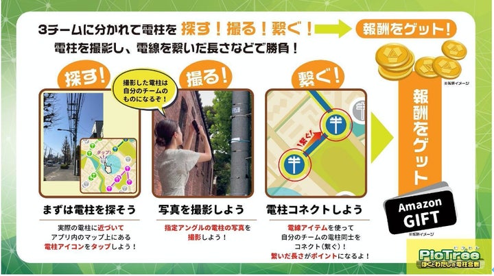 ピクトレはチームで電力アセットを撮影して競い合うゲームで、報酬やチームランキングが用意されています。