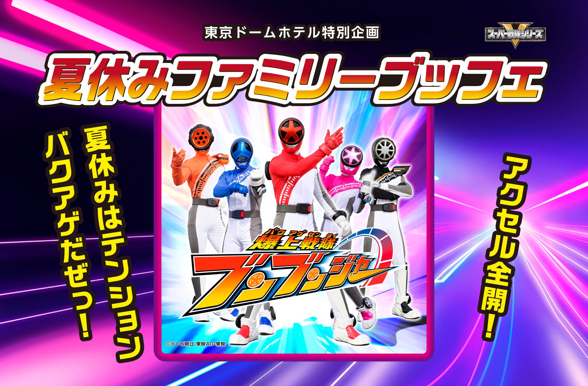2024年8月3日に東京ドームホテルで開催される「爆上戦隊ブンブンジャー夏休みファミリーブッフェ」は、爆上戦隊ブンブンジャーのヒーローショーと高橋秀幸氏のミニコンサートが楽しめるイベントです。