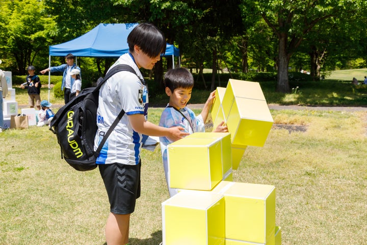 親子が協力してミッションに挑戦し、子どもたちの笑顔がスタジアムに満ち溢れました。