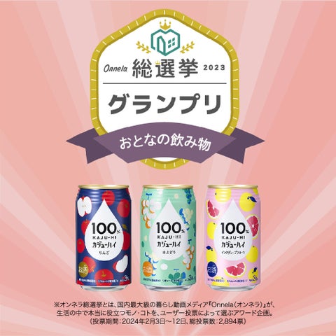 - 「100%カジューハイ」が女性支持を受け、「おとなの飲み物部門」グランプリ受賞