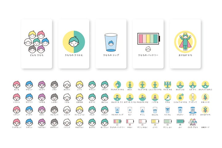 気持ちカードや切り替えカード、気持ちのコップ、気持ちのバッテリー、スキルカードなどが含まれており、気持ちを理解したり切り替えたりする方法を学ぶことができます。