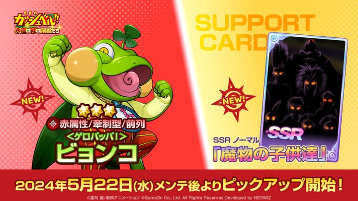 新たなキャラクター「<ゲロパッパ!>ビョンコ」と、サポートカードSSR「魔物の子供達」が追加されました。