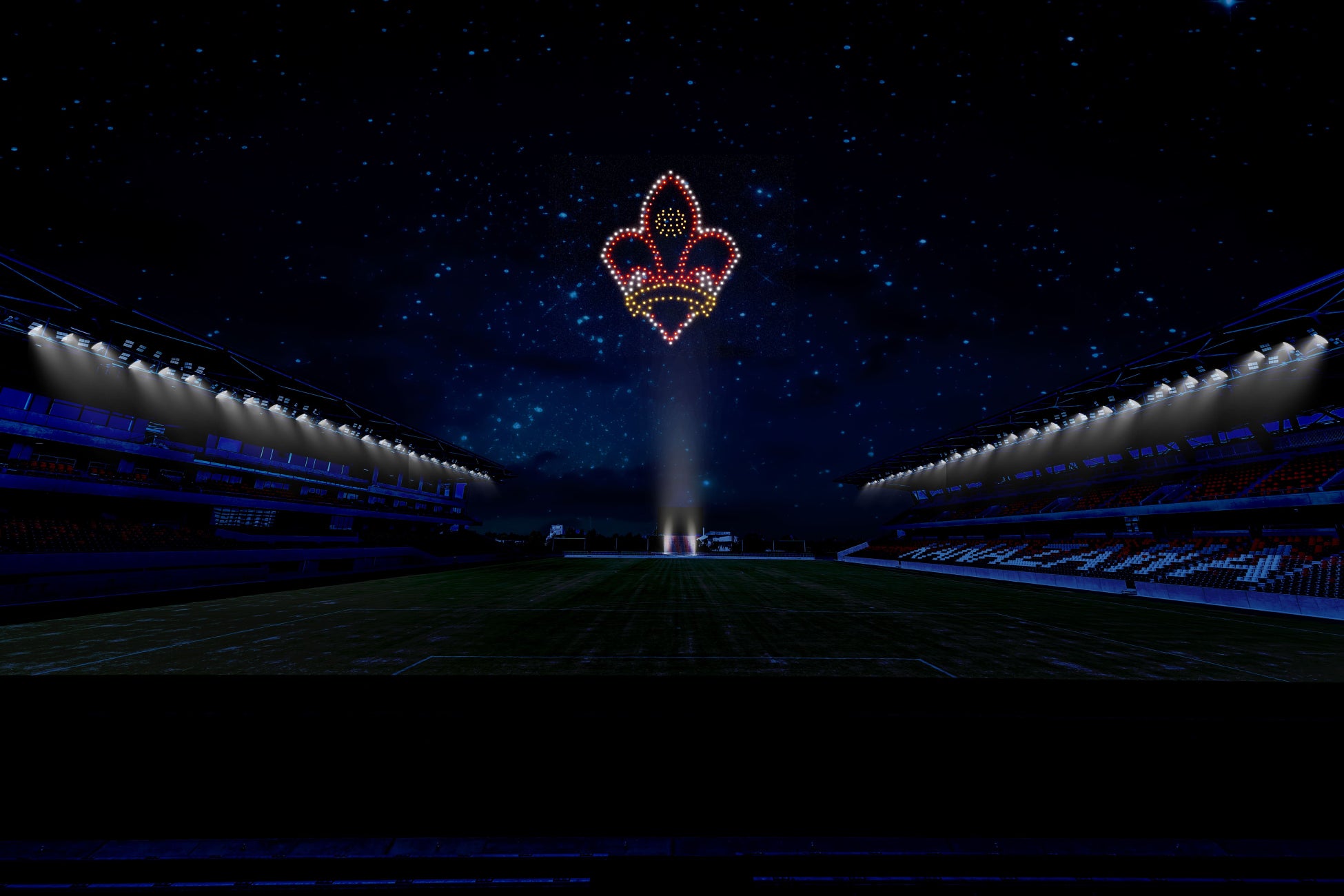 約300機のドローンが夜空を彩り、ツエーゲン金沢のエンブレムや「ONE HEART!石川」が浮かび上がる予定です。