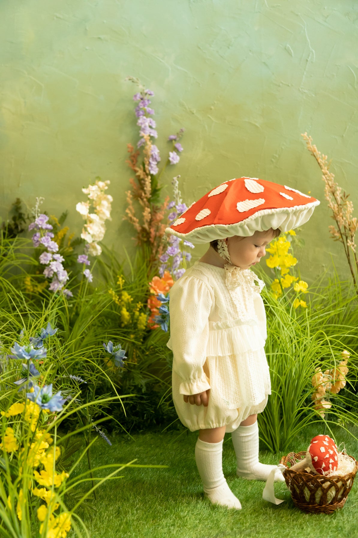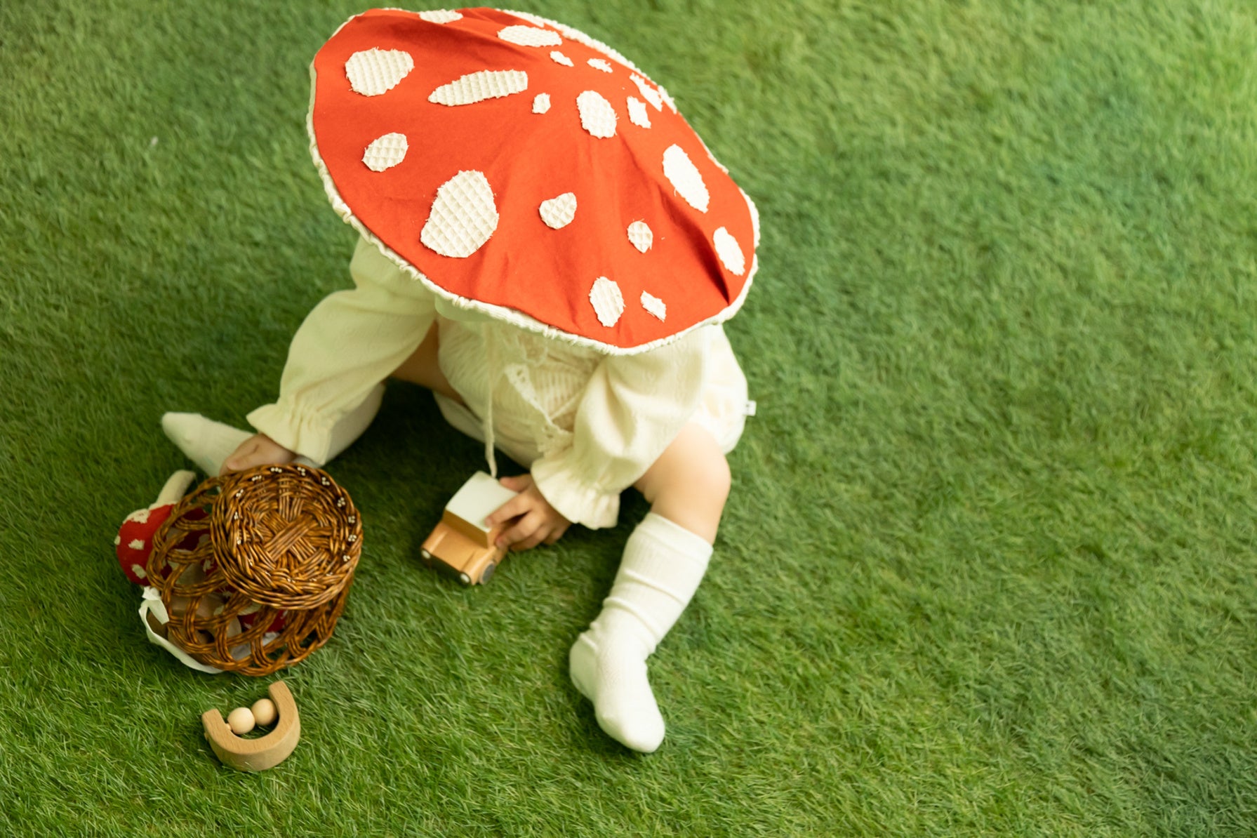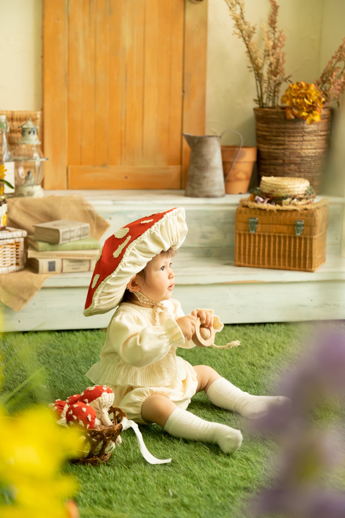 三景スタジオ旭川本店のなりきりbabyシリーズに新作!森の中で冒険するキノコちゃんが可愛い!オリジナル衣装で撮影しよう!