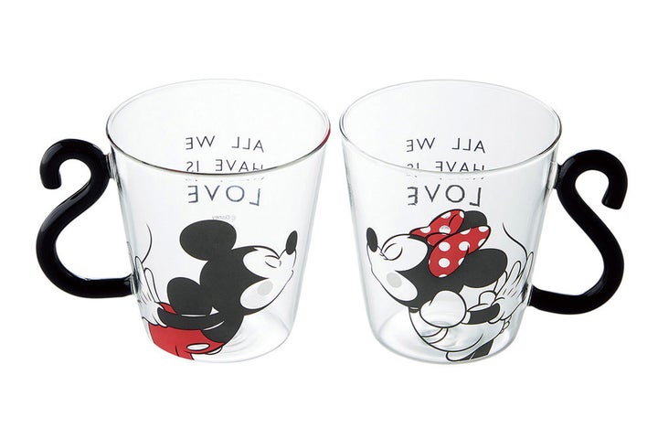 商品にはミッキーカラーの本体やミッキーフォルムの取手、ミッキー&ミニーのステッカーが含まれています。