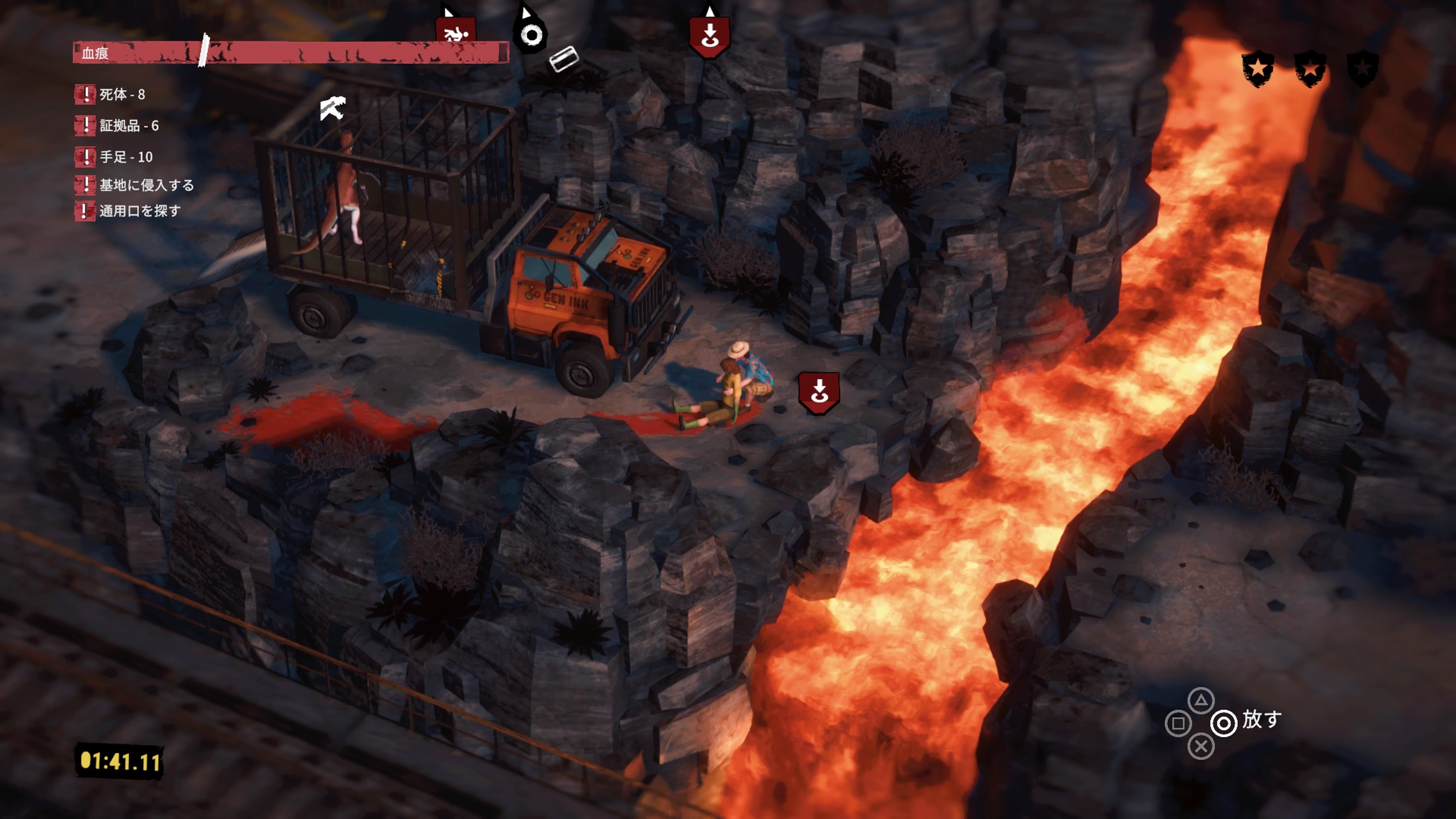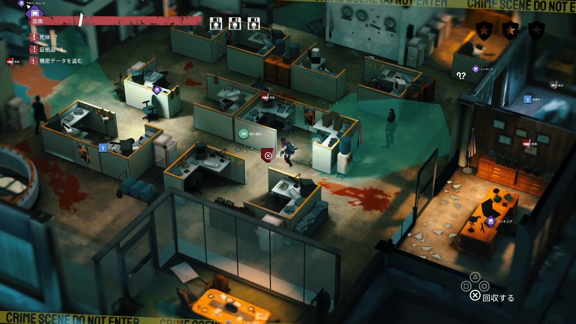 警官の目を盗み、『死体の処分』、『証拠品の回収』、『血痕の清掃』のミッションを遂行して現場からズラかれ!