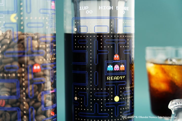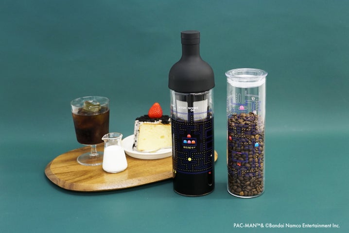 初のコラボレーションとして、HARIOの水出しコーヒーボトルが「パックマン」と共に登場します。