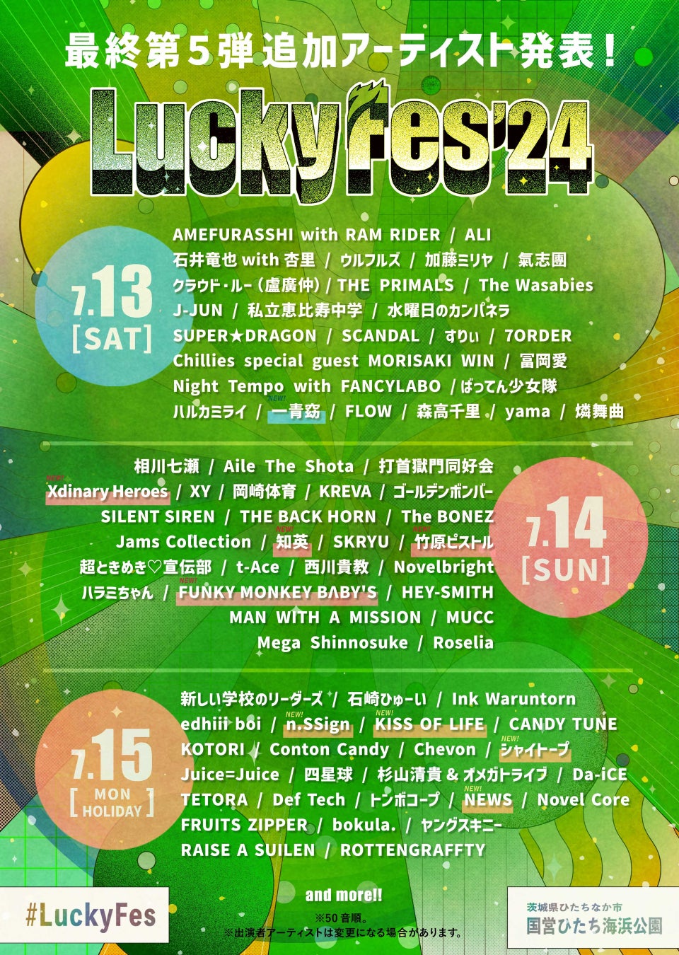 株式会社LuckyFM茨城放送は、7月13日から15日の3連休に国営ひたち海浜公園で音楽フェス「LuckyFes’24」を開催します。